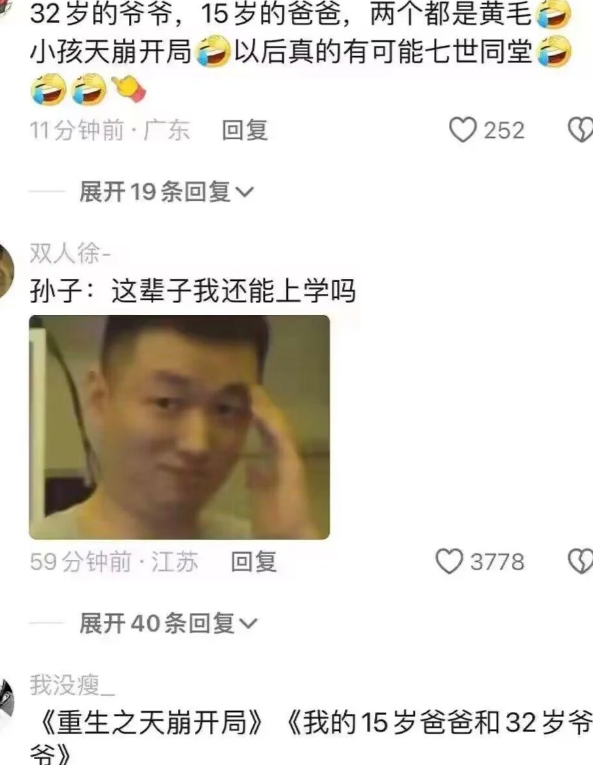 但即便再包容,32岁怎么着都不该是当爷爷的年龄吧?可事实就是这么荒诞!网上有一岁的男子分享了自己“喜当爷”的好消息,看得评论区网友一愣一愣的——32岁?当爷爷了?